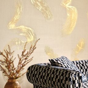 Majestic in nature and artistic in form, printed, bold brushstrokes embellished with shimmering gold foil command attention in three-dimensional splendour.