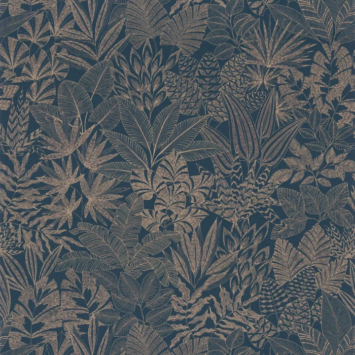 The whole surface of the paper is printed using the “all over” technique. DOUM is designed to catch the light. The fine lines of metallic ink give the foliage a subtle shine and highlight their delicate veining.