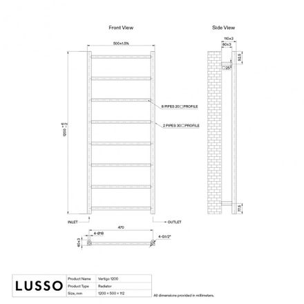 The Vertigo 1200 Radiator is the archetypal modern radiator design, featuring eight horizontal pipes, the Vertigo allows for maximum practicality while being treated to the classic, luxurious Lusso Stone finish.