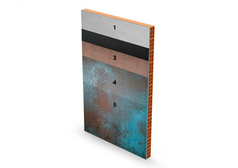 Oxydecor Copper, on the other hand, extremely faithfully simulates the appearance of copper panels. Oxydecor Verderame made in three different variants - Verderame, Burnished Verderame or Antique Verderame - gives life to scratchy corrosion effects. Oxydecor is also applied to furniture and furnishing objects, giving them an industrial style.