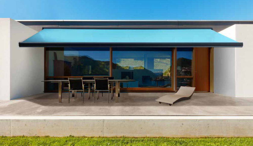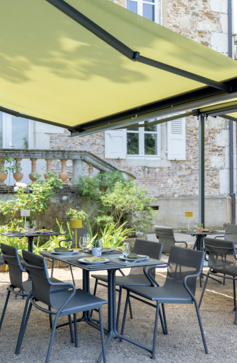 The fabric’s unique design and its enduring, plain colors bring a touch of modernity to your terrace or patio.