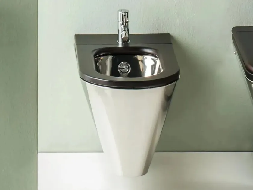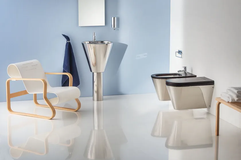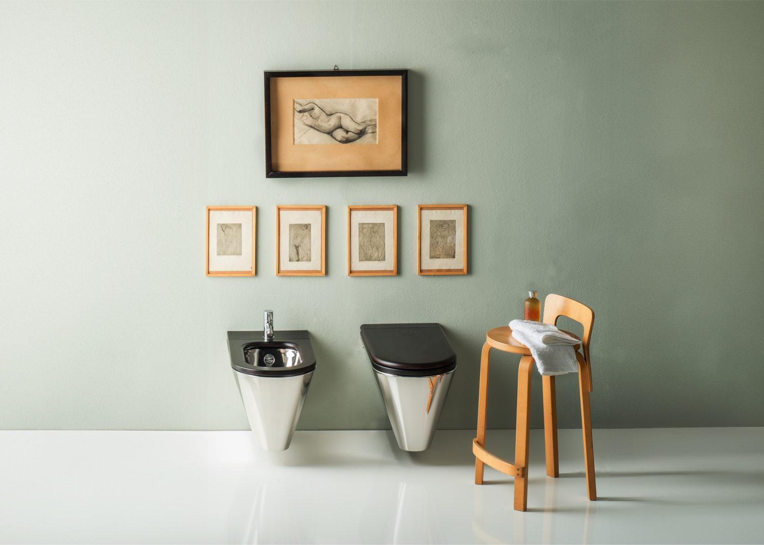 The John & Mary Collection, Crafted From Polished Stainless Steel, Designed By Luigi Ferrario And Studio Rapsel. John & Mary are distinguished by their sinuous lines and the polished finish of the stainless steel, a durable and easy-to-clean material. The series consists of a wall-hung WC (John) and bidet (Mary), both of which promote easy installation and improved bathroom hygiene