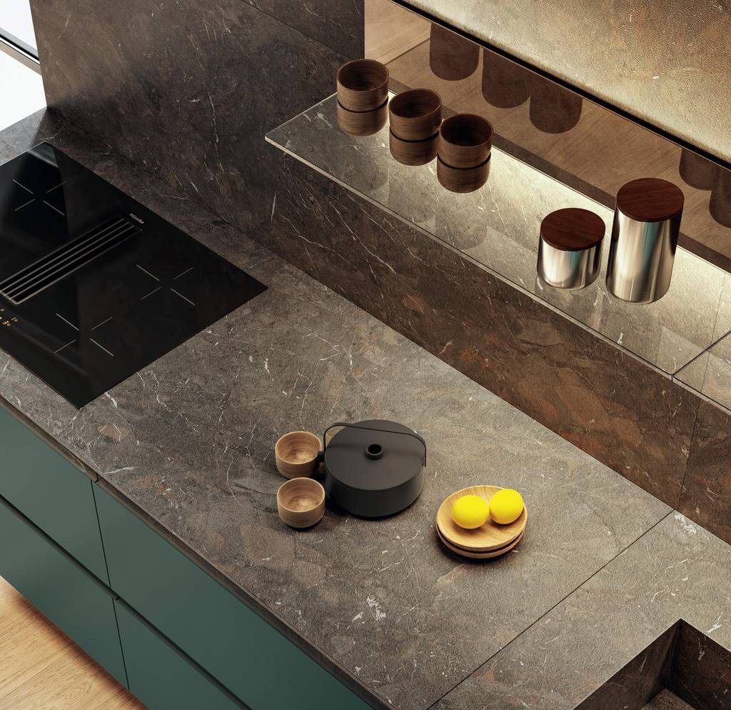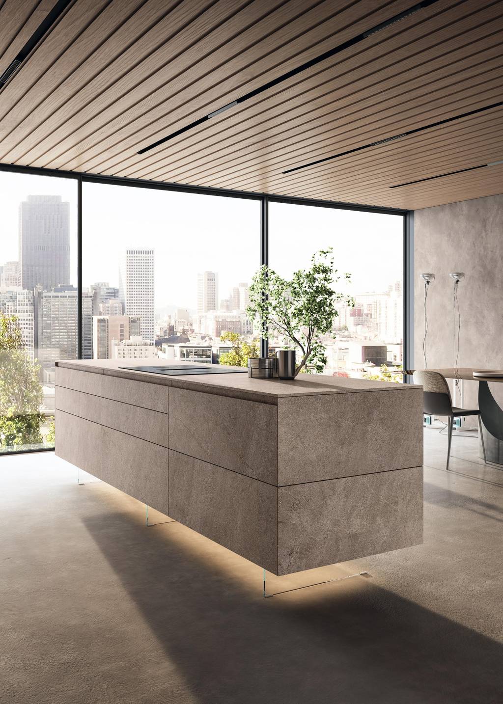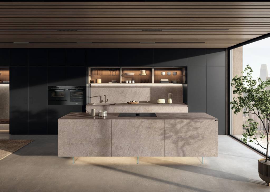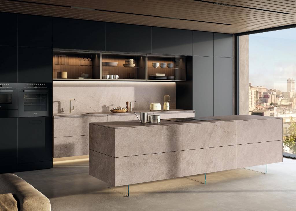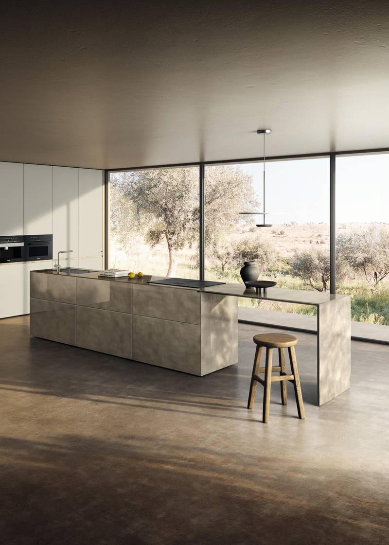 Thin tops, doors and sides made of the same material are seamlessly integrated into the product design, while the innovative handles are almost invisible. The result is a collection of pure forms that preserve the kitchen’s innate elegance.