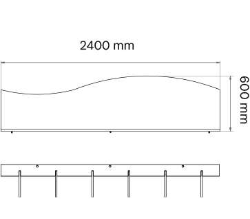 Baffle made from recycled polyester fibre with a metallic structure for suspension, cut to size.