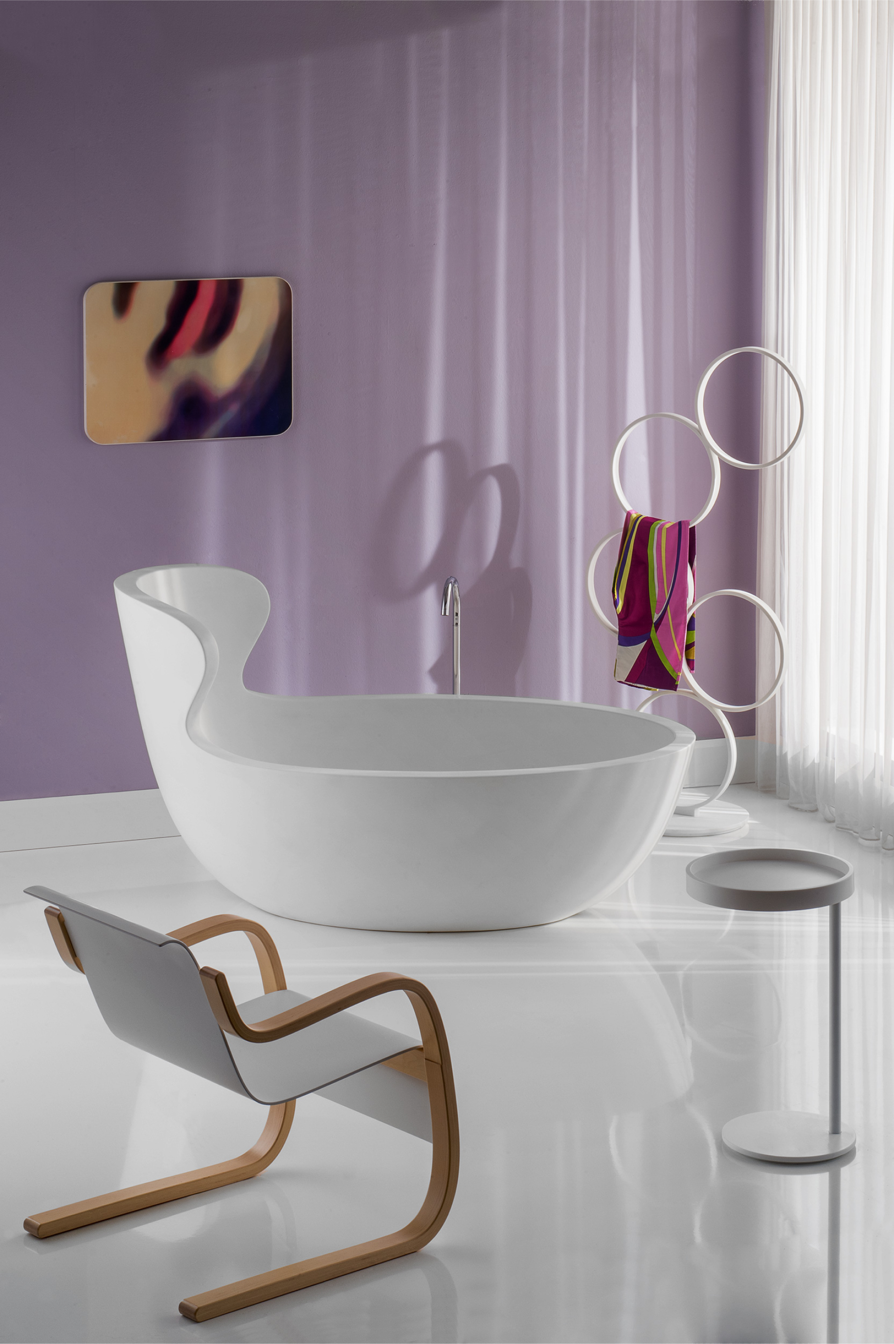 The backrest of the Arne bathtub is inspired by the typical seating of the 1960s, a decade marked by creativity and innovation.