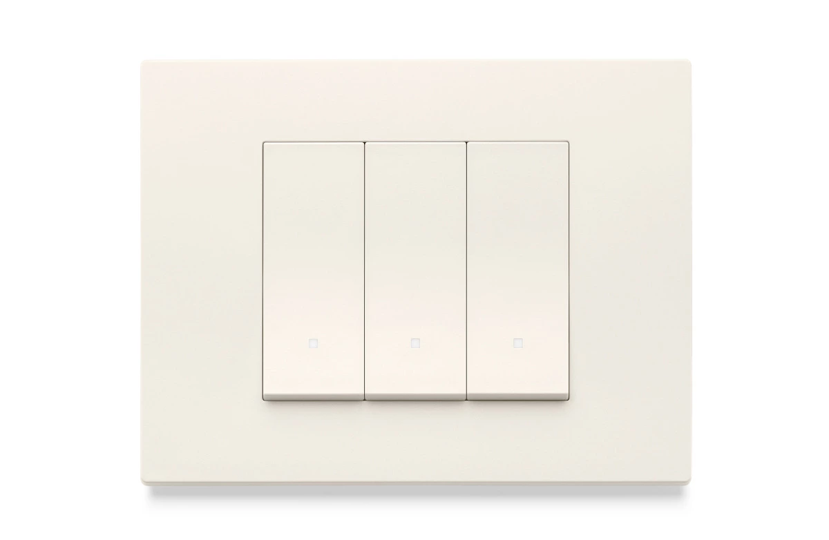 -Absolutely flat effect: the control remains perfectly aligned with the surface of the cover plate, even after each use. -Generously-sized 53 mm button which can be operated across the entire surface. -Control with patented mechanism which stands out for its kinematic precision and requires minimal pressure to be activated. -Sophisticated light details: in the axial control, the distinctive illuminated mark identifies its function in the dark.