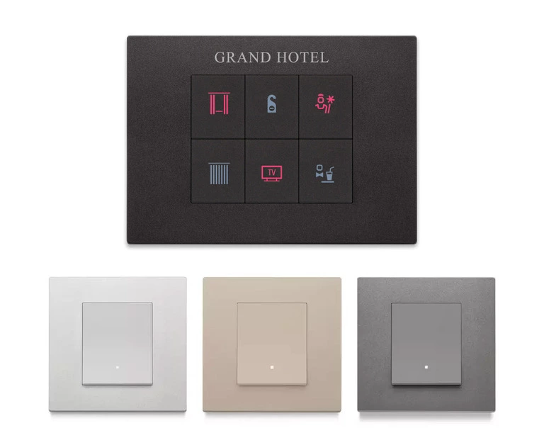 To enhance the value of an accommodation facility’s identity, the cover plates can be engraved with the customer’s own logo; laser technology ensures the symbols are clear and accurate. Customised pictograms can also be inserted. The customised design is carefully associated with the control for lasting results and a further enhanced user experience. The buttons can also be customised in Silver, Clay and Metal colours for a total look effect with the painted technopolymer cover plate.