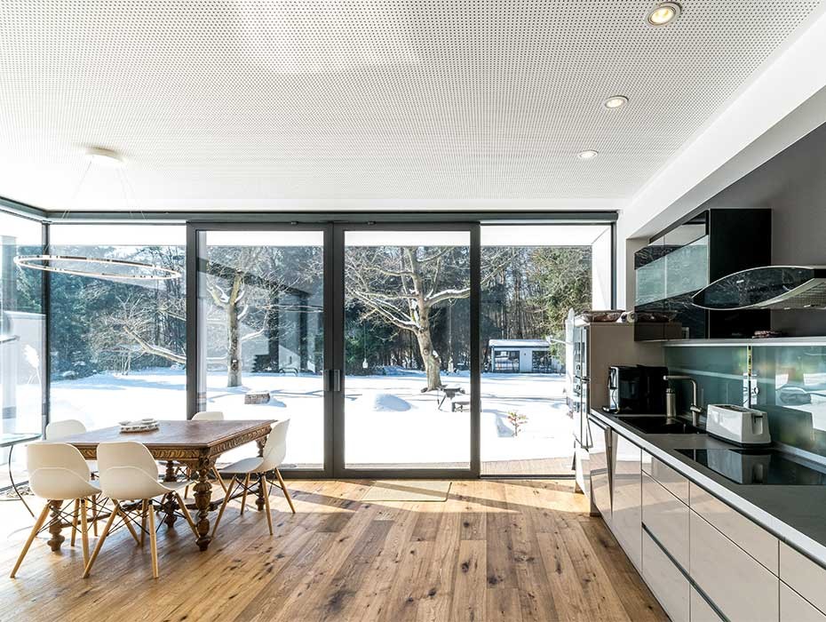 At the same time, this lifting-sliding door offers best insulation values. Additional highlights connecting the interior with the exterior are a corner designed with fixed glazings, and a corner solution that can be opened – both create a unique living experience.