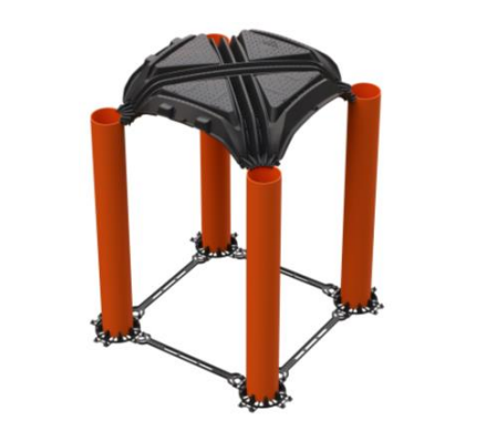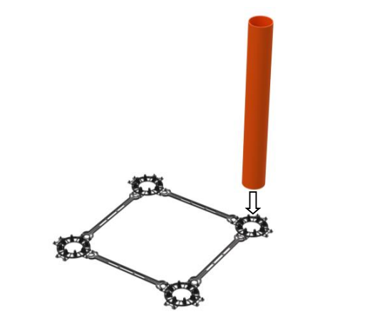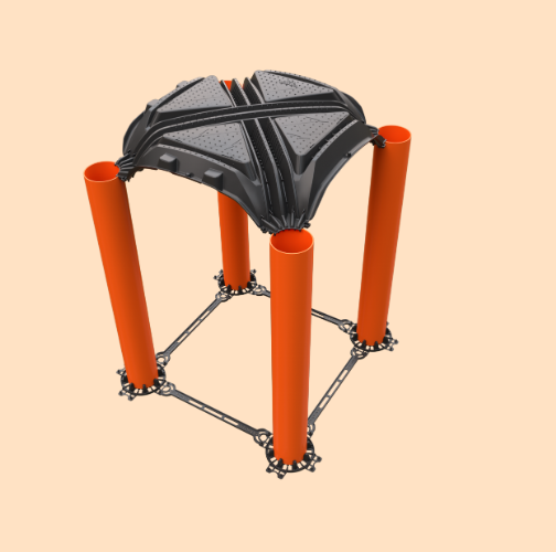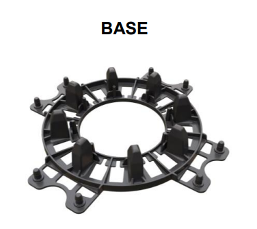 Elevetor Max consists of a base grid, height-adjustable PVC pipes (Ø125, Ø160, or Ø200), and a larger, 71 x 71 x 15 cm top formwork that can carry up to 5,000 kg/m2 loads.