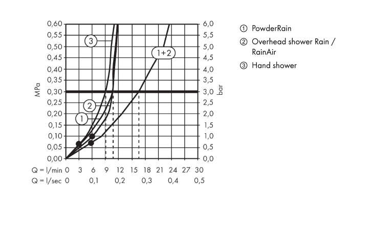 MAXIMUM FLOW RATE FOR SHOWERPIPE AT 3 BAR